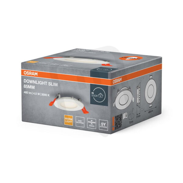 DL SLIM 85MM 4.5W 3000K 230V WT OSRAM
