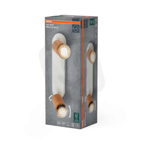 LED Spot Brick 2xGU10 White and Wood