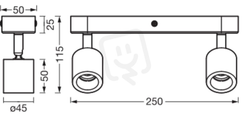 Délka (včetně kulatých svítidel): 250.00 mm