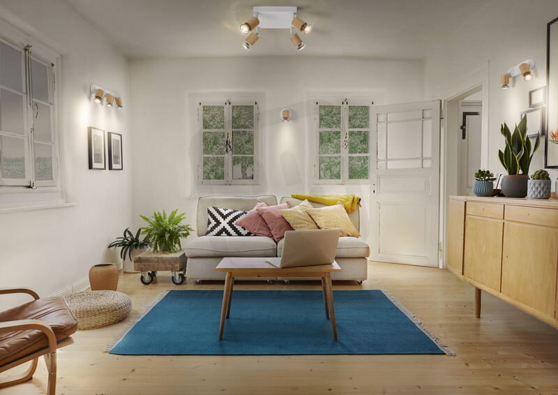 Vlastnosti výrobku: Řada svítidel obsahuje pět verzí s až 4 bodovými hlavami. Materiál korpusu: kov a dřevo. Vypínač na 1hlavové verzi pro snadné ovládání. Nastavitelné hlavy.