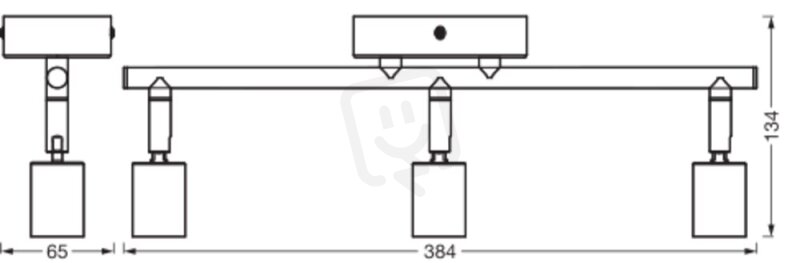 Délka (včetně kulatých svítidel): 384.00 mm