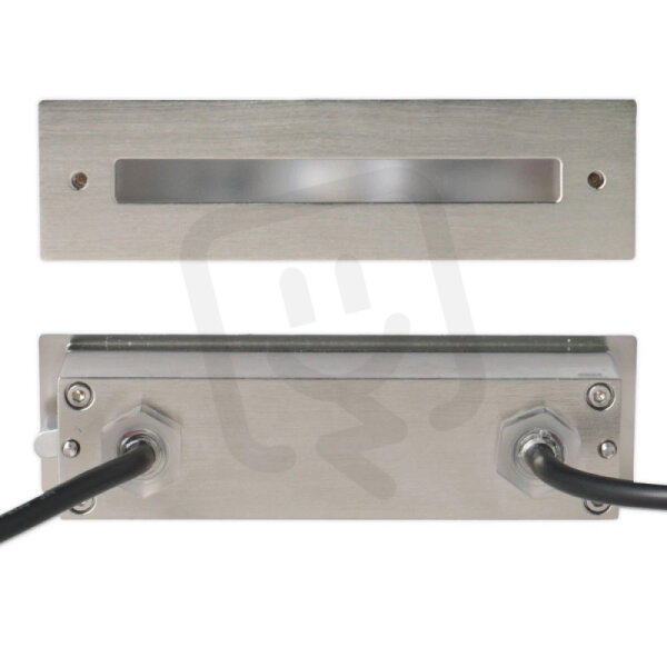 Lineární LED světlo na zábradlí, hliníkové pouzdro. Vhodné pro madlo o rozměrech > 45x45 mm a tloušťce stěny 0,8-3 mm. Dva kabely 20 cm, jeden s vidlicí a maticí a druhý se zásuvkou bez matice.