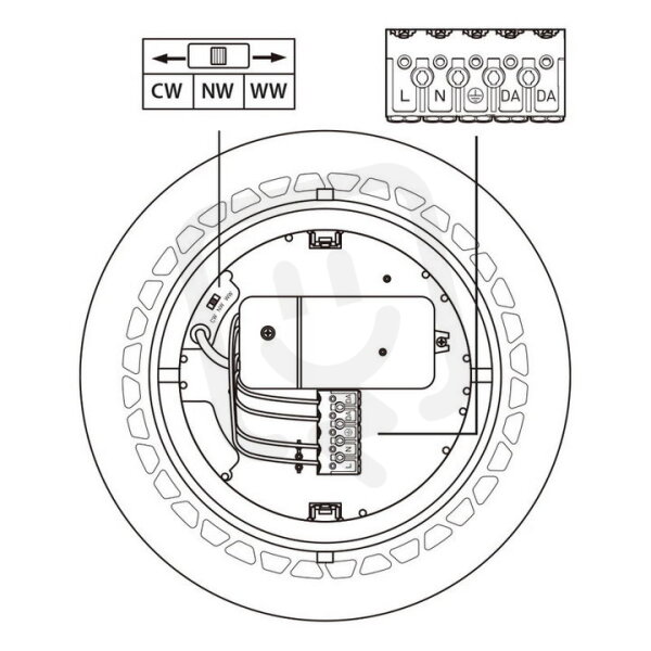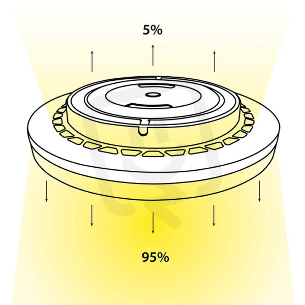 LED stropní svítidlo 36W černé, 230V, IP54, 3CCT - teplá, neutrální nebo studená bílá, max. světelný tok 4065lm/3000K, 4270lm/4000K, 4480lm/6000K, svíticí přímo/nepřímo (95/5%), vyzařovací úhel 150°, CRI 80, životnost 50.000h, rozměry ∅ 450x70mm, materiál plast, mléčný difuzor, stmívatelné DALI/Push Dim, PF>0,9, s přepínačem teploty chromatičnosti 3000/4000/6000K, v rámci volitelného příslušenství lze dokoupit sadu pro zavěšení svítidla