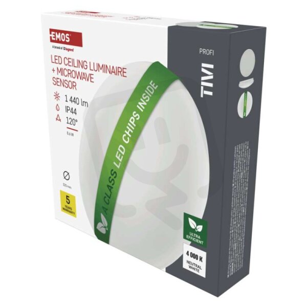 LED přisazené svítidlo TIVI A CLASS MW sensor 8,6W IP44 neutrální EMOS ZM3406M