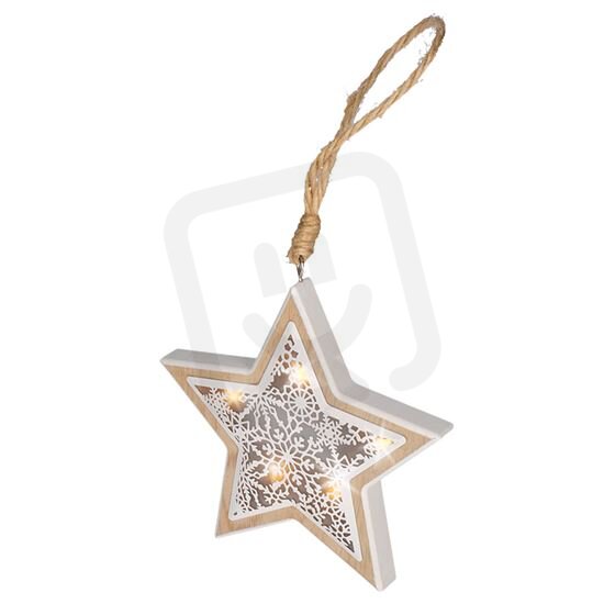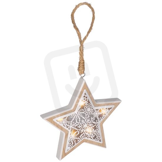 LED vánoční hvězda, dřevěný dekor, 6LED, teplá bílá, 2x AAA SOLIGHT 1V45-S