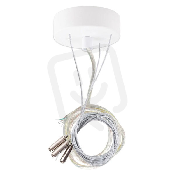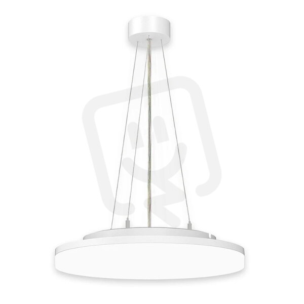 LED závěsné svítidlo 36W bílé, 230V, IP20, 3CCT - teplá, neutrální nebo studená bílá, max. světelný tok 4065lm/3000K, 4270lm/4000K, 4480lm/6000K, svíticí přímo/nepřímo (95/5%), vyzařovací úhel 150°, CRI 80, životnost 50.000h, rozměry ∅ 450x69mm + závěs 1,5m včetně transparentního čtyřžilového přívodu, materiál plast/kov, mléčný difuzor, stmívatelné DALI/Push Dim, PF>0,9, s přepínačem teploty chromatičnosti 3000/4000/6000K