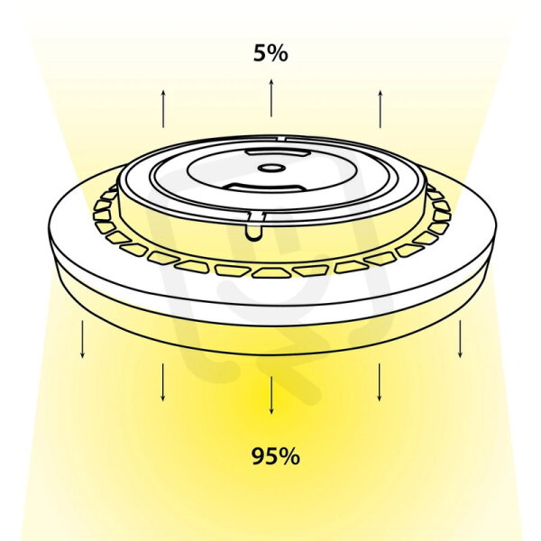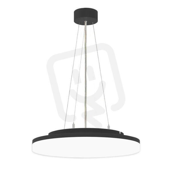 LED závěsné svítidlo 36W černé, 230V, IP20, 3CCT - teplá, neutrální nebo studená bílá, max. světelný tok 4065lm/3000K, 4270lm/4000K, 4480lm/6000K, svíticí přímo/nepřímo (95/5%), vyzařovací úhel 150°, CRI 80, životnost 50.000h, rozměry ∅ 450x69mm + závěs 1,5m včetně transparentního čtyřžilového přívodu, materiál plast/kov, mléčný difuzor, stmívatelné DALI/Push Dim, PF>0,9, s přepínačem teploty chromatičnosti 3000/4000/6000K