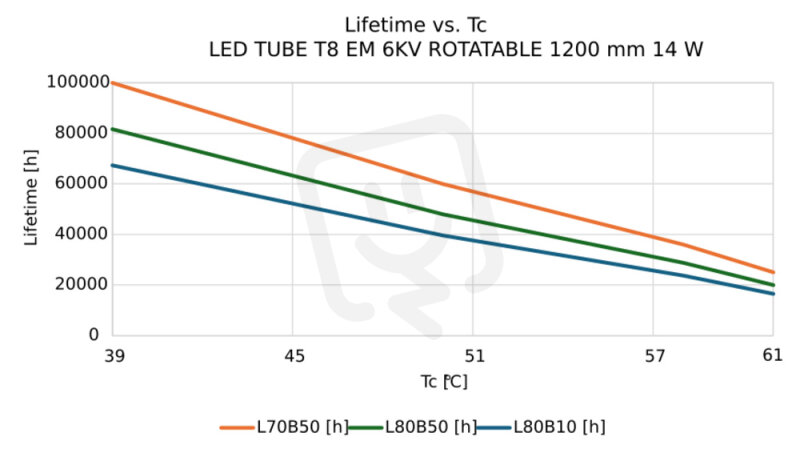 Střední doba života L90/B10 @ 25 °C: 100000 h