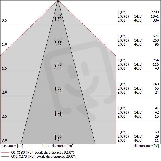 3 x powerLEDs 6.1 W DC - 7.8 W AC