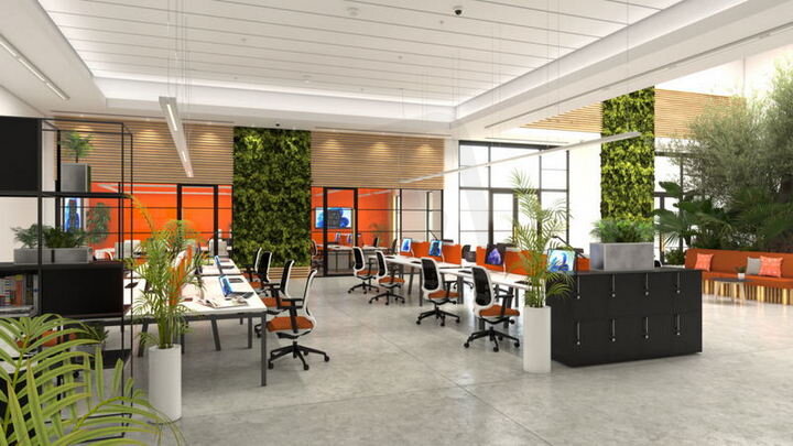 Přisazené svítidlo pro kancelářské použití jednotlivě nebo jako světelný pás, s CRI90, technologií DALI-2 IoT a asymetrickým rozptylem světla, 1 200 mm.