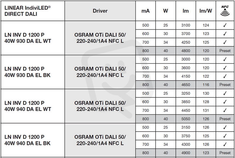 LINEAR INDIVILED DIRECT 1200 DALI EMERGENCY 1200 P 40W 930 DA EL WT