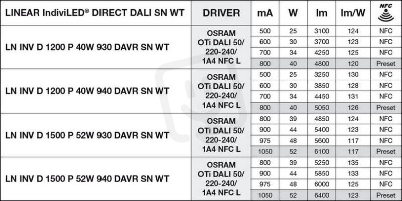 LINEAR INDIVILED DIRECT 1500 DALI SENSOR 1500 P 52W 930 DAVR SN WT