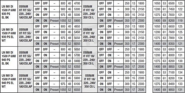 Světelný tok: 8200 lm / 7650 lm / 7450 lm / 6500 lm
