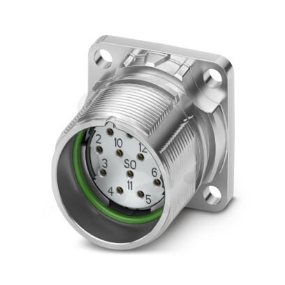 M23, Přístrojový konektor zpředu stěny, řada: M23 PRO Signal, přímý, stíněná: ano, pro standardní spojku a rychlospojku ONECKLICK, Počet pólů: 12, Směr otáčení: standardní, typ kontaktu: Zásuvka, Připojení pájením, rozměr příruby: 26 mm x 26 mm, kódování: N, Položka neobsahuje olovo dle směrnice RoHS II bez výjimky 6c (Pb < 0,1 %).