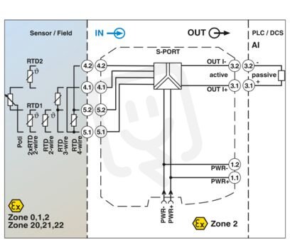 Teplotní převodník izolační bezpečnosti: Převádí signály z odporových teploměrů instalovaných v prostředí s nebezpečím výbuchu a přenáší signál 0/4-20 mA do zátěže v bezpečné oblasti. Volně programovatelný. Galvanické 3cestné oddělení, úroveň bezpečnostní integrity, šroubové připojení, standardní konfigurace.