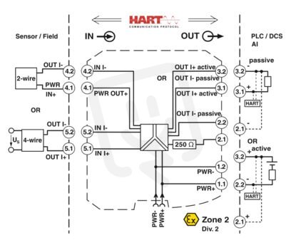 Napájecí a vstupní oddělovací zesilovač, transparentní pro HART. Přenáší napájené nebo aktivní 0/4–20mA signály k zátěži (aktivní nebo pasivní). Galvanické 3cestné oddělení, SIL 2 podle IEC 61508.