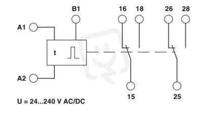 Multifunkční časové relé, širokorozsahové napájení 24 V AC/DC ... 240 V AC/DC, 13 funkcí, 1 nastavitelná doba, navíc k funkcím lp a li. Nastavitelný časový rozsah (10 ms ... 999 h:59 min), dvě možnosti konfigurace, ochrana heslem, podpora slaboproudých kontaktů, vstupy pro PNP a NPN bezdotykové spínače přiblížení, 2 PDT, zástrčka.