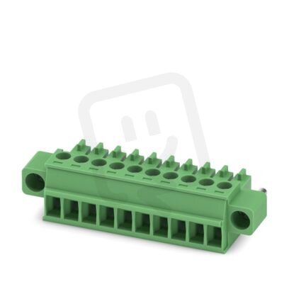 Konektor desek plošných spojů, jmenovitý průřez: 1,5 mm², barva: zelená, jmenovitý proud: 8 A, jmenovité napětí (III/2): 160 V, povrch kontaktů: Sn, typ kontaktu: Zásuvka, počet potenciálů: 10, počet řad: 1, počet pólů: 10, počet přípojek: 10, řada výrobků: MC 1,5/..-STF, rozteč: 3,5 mm, typ připojení: Šroubová svorka s tahovým pouzdrem, typ šroubového připojení: L Podélná štěrbina, směr připojení vodič/deska: 0 °, systém zásuvných hlavic: COMBICON MC 1,5, zajištění: Šroubový zámek, způsob upevnění: Šroubová příruba, způsob balení: zabaleno v krabici