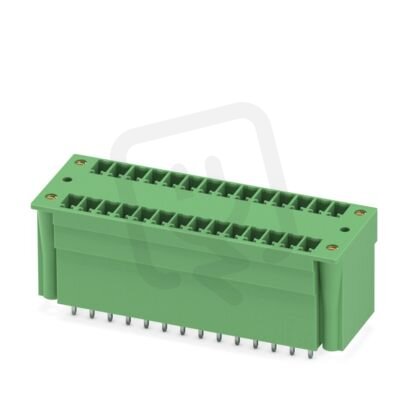 Zásuvka konektoru desky plošných spojů, jmenovitý průřez: 1,5 mm², barva: zelená, jmenovitý proud: 8 A, jmenovité napětí (III/2): 160 V, povrch kontaktů: Sn, typ kontaktu: Trn, počet potenciálů: 28, počet řad: 2, počet pólů: 14, počet přípojek: 28, řada výrobků: MCDV 1,5/..-G1F, rozteč: 3,81 mm, montáž: Vlnové pájení, pin-layout: Lineární pinning, délka pinu [P]: 3,4 mm, počet pájecích kolíků na každý potenciál: 1, systém zásuvných hlavic: COMBICON MC 1,5, Orientace tvaru konektoru: Standardní, zajištění: Šroubový zámek, způsob upevnění: Závitová příruba, způsob balení: zabaleno v krabici, U kombinace se zástrčkami MCV je vždy nutné použít zástrčku MCVW a MCVR.