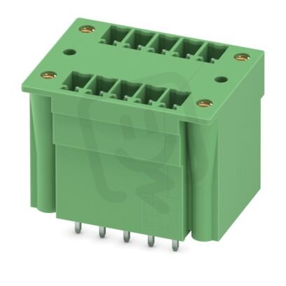Zásuvka konektoru desky plošných spojů, jmenovitý průřez: 1,5 mm², barva: zelená, jmenovitý proud: 8 A, jmenovité napětí (III/2): 160 V, povrch kontaktů: Sn, typ kontaktu: Trn, počet potenciálů: 10, počet řad: 2, počet pólů: 5, počet přípojek: 10, řada výrobků: MCDV 1,5/..-G1F, rozteč: 3,81 mm, montáž: Vlnové pájení, pin-layout: Lineární pinning, délka pinu [P]: 3,4 mm, počet pájecích kolíků na každý potenciál: 1, systém zásuvných hlavic: COMBICON MC 1,5, Orientace tvaru konektoru: Standardní, zajištění: Šroubový zámek, způsob upevnění: Závitová příruba, způsob balení: zabaleno v krabici, U kombinace se zástrčkami MCV je vždy nutné použít zástrčku MCVW a MCVR.