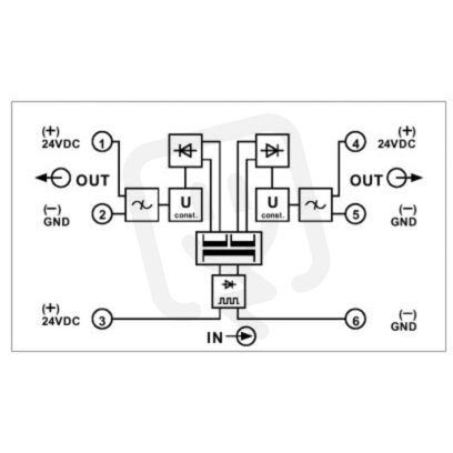 Měnič DC/DC, s galvanickým oddělením výstupů, vstup 24 V DC, výstup 2 x 24 V DC/2 x 30 mA
