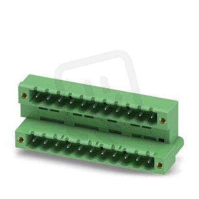 Zásuvka konektoru desky plošných spojů, jmenovitý průřez: 2,5 mm², barva: zelená, jmenovitý proud: 10 A, jmenovité napětí (III/2): 320 V, povrch kontaktů: Sn, typ kontaktu: Trn, počet potenciálů: 22, počet řad: 2, počet pólů: 11, počet přípojek: 22, řada výrobků: MDSTB 2,5/..-GF, rozteč: 5,08 mm, montáž: Vlnové pájení, pin-layout: Lineární pinning, délka pinu [P]: 3,23 mm, počet pájecích kolíků na každý potenciál: 1, systém zásuvných hlavic: COMBICON MSTB 2,5, Orientace tvaru konektoru: Standardní, zajištění: Šroubový zámek, způsob upevnění: Závitová příruba, způsob balení: zabaleno v krabici, V případě kombinace se zástrčkovými díly MVSTB nebo FKCV je vždy nutné použít zástrčku MVSTBW (resp. FKCVW) a zástrčku MVSTBR (resp. FKCVR). Kombinace se zástrčkovými díly TMSTBP není možná!