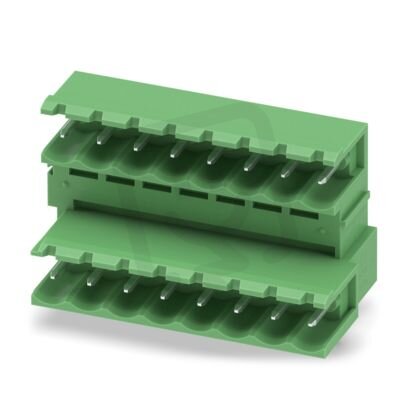 Zásuvka konektoru desky plošných spojů, jmenovitý průřez: 2,5 mm², barva: zelená, jmenovitý proud: 10 A, jmenovité napětí (III/2): 320 V, povrch kontaktů: Sn, typ kontaktu: Trn, počet potenciálů: 16, počet řad: 2, počet pólů: 8, počet přípojek: 16, řada výrobků: MDSTB 2,5/..-G, rozteč: 5,08 mm, montáž: Vlnové pájení, pin-layout: Lineární pinning, délka pinu [P]: 3,23 mm, počet pájecích kolíků na každý potenciál: 1, systém zásuvných hlavic: COMBICON MSTB 2,5, Orientace tvaru konektoru: Standardní, zajištění: bez, způsob upevnění: bez, způsob balení: zabaleno v krabici, Připojitelná! Pojistná příruba: č. výr. 1736771, 1736768. U kombinace se zástrčkami MVSTB nebo FKCV je vždy nutné použít zástrčku MVSTBW (příp. FKCVW) a MVSTBR (příp. FKCVR). Kombinace se zástrčkami TMSTBP není možná!