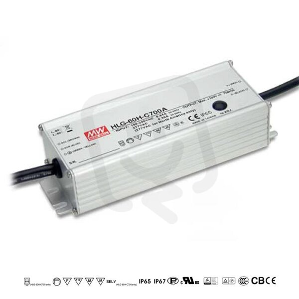 Stmívatelný proudový zdroj 70W 700mA MEAN WELL HLG-60H-C700B