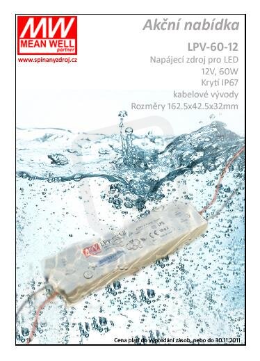 Napájecí zdroj pro LED 60W 15V 4000mA MEAN WELL LPV-60-15
