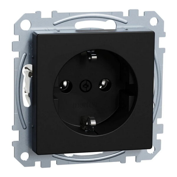 Zásuvka SCHUKO, Merten System M, bezšroubová, černá matná, 16 A, 250V AC, Oceánský plast