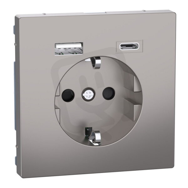 Zásuvka SCHUKO, Merten System D, s USB nabíječkou typu A+C 3A, nikl, 16 A, 250V AC, termoplast matný