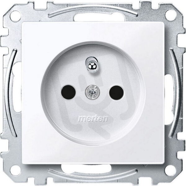 Zásuvka s ochranným kolíkem, Merten System M, clonky, bezšroubová, active white, 16 A, 250V AC, termoplast lesklý