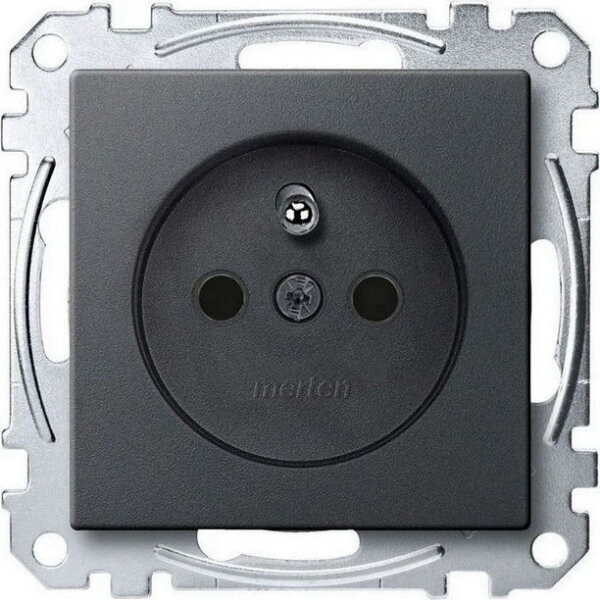 Zásuvka s ochranným kolíkem, Merten System M, clonky, bezšroubová, antracit, 16 A, 250V AC, termoplast matný