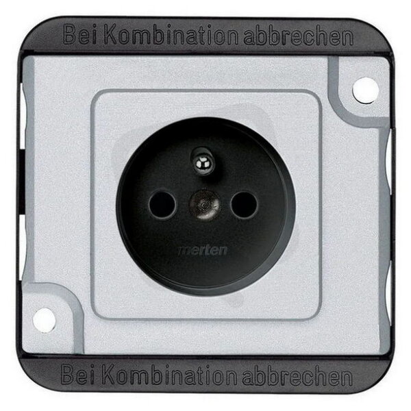 Zásuvka, Merten Antivandal, s ochranným kolíkem, clonky, bezšroubová, 16 A, 250 V, matně stříbrná