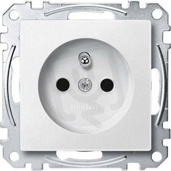 Zásuvka s ochranným kolíkem, Merten System M, clonky, šroubová, polar white, 16 A, 250V AC, termoplast matný