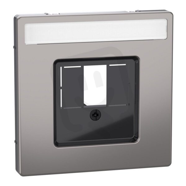 Centrální deska, Merten System D, s obdelníkovým otvorem a popisovým polem, nikl kovová, kov