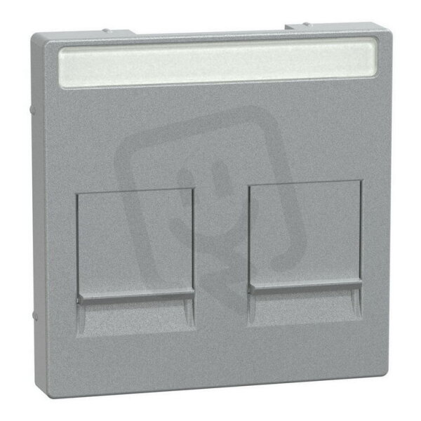 Centrální deska, Merten System M, dvojnásobná pro modulární konektory s popisovým polem a protiprachovou klapkou, aluminium, termoplast matný
