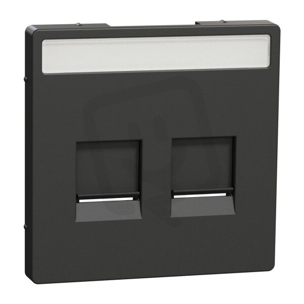Centrální deska, Merten System D, dvojnásobná pro modulární konektory s popisovým polem a protiprachovou klapkou, antracit, termoplast barvený