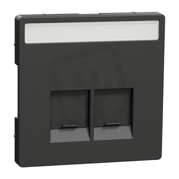 Centrální deska, Merten System D, dvojnásobná pro datové konektory Schneider Electric RJ45 s popisovým polem, antracit, termoplast barvený