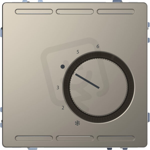 Mechanizmus pokojového termostatu, Merten System D, 230 V s přepínacím kontaktem a centrální deskou, nikl kovová, kov