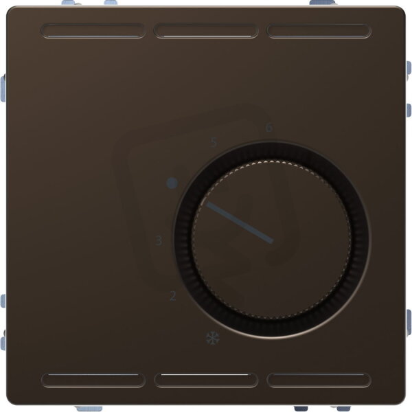 Mechanizmus pokojového termostatu, Merten System D, 24 V s přepínacím kontaktem a centrální deskou, mocca kovová, kov