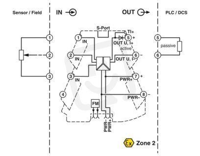 Konfigurovatelný měřicí převodník pozice potenciometru se zásuvnou technikou připojení pro připojení potenciometrů 0 ? ... 100 ? až 0 k? ... 100 k?. Konfigurovatelný pomocí DIP přepínače nebo pomocí softwaru. Technika připojení push-in, standardní konfigurace