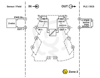 1kanálový 2cestný oddělovač napájený z výstupní smyčky s výměnnou technologií připojení pro galvanické oddělení analogových signálů. Vstupní signál = výstupní signál: 0(4) mA … 20 mA. S technikou připojení push-in.