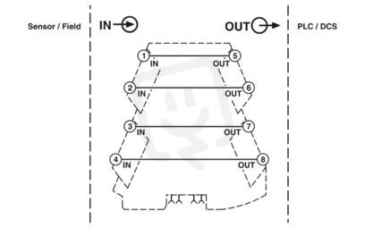 Průchozí svornice se zásuvnou technikou připojení pro přenos již galvanicky oddělených signálů. Technologie šroubového připojení