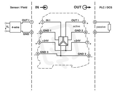 Třícestný oddělovací zesilovač, ke galvanickému oddělení analogových signálů, se šroubovými svorkami, vstupní signál: 0(4) mA ... 20 mA, výstupní signál: 0(4) mA ... 20 mA