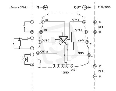 Konfigurovatelný spínací zesilovač NAMUR pro bezdotykové přibližovací iniciátory, plovoucí a odporově zatěžované spínací kontakty. Na výstupní straně 2 spínače, se šroubovou svorkou