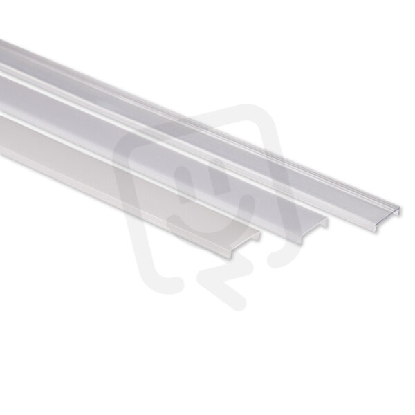 Mléčný difuzor pro použití s profily AE2, PN2. Difuzor lze do profilu nacvaknout. Slouží k ochraně LED pásku proti působení vnějších vlivů, zabezpečuje ho rovněž proti vypadnutí a pomáhá rozptýlit světlo z jednotlivých LED – tím snižuje oslnění. Průměrná propustnost difuzoru je 70%. Materiál PC.
