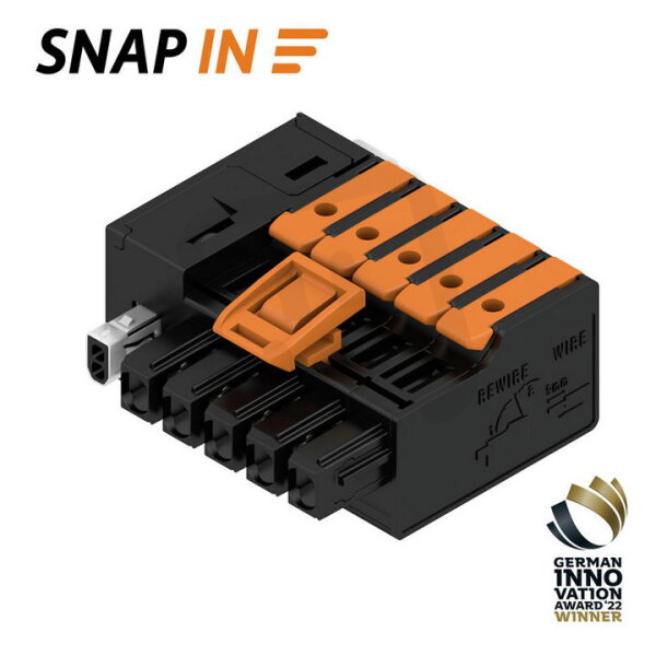 Konektor PCB (vodičové připojení), 320 V, 26.8 A, Rozteč v mm: 5.00, 4 mm², Počet pólů: 5, SNAP IN, Box