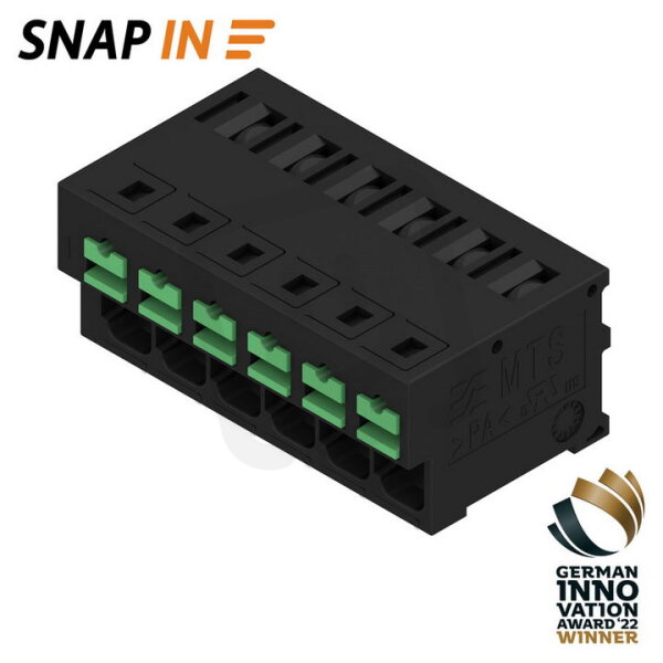 Svorka PCB, 320 V, 32 A, Rozteč v mm: 5.00, 4 mm², Počet pólů: 6, SNAP IN, Připojení pájením přetavením průchozím otvorem, 90°, Tube