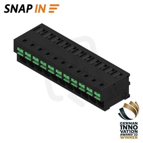 Svorka PCB, 320 V, 32 A, Rozteč v mm: 5.00, 4 mm², Počet pólů: 11, SNAP IN, Připojení pájením přetavením průchozím otvorem, 90°, Tube